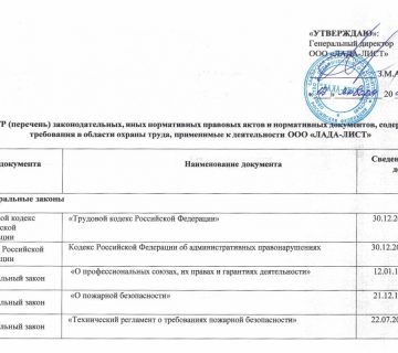 Реестр нормативных правовых актов 202602.03.2026Реестр законодательных, иных нормативных правовых актов и нормативных документов, содержащий требования в области охраны труда, применимые к деятельности ООО “ЛАДА-ЛИСТ” Скачать ... Читать далее...