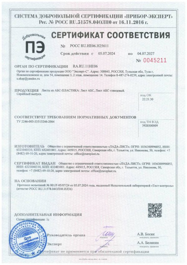 Характеристики АБС/АСА листового пластика