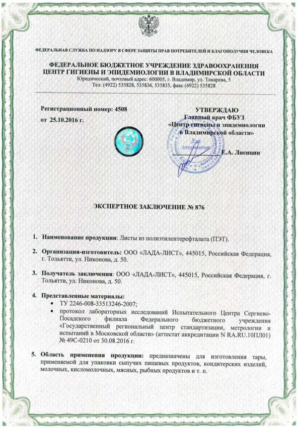 Лист из полиэтилентерефталата (ПЭТ) от компании «ЛАДА-ЛИСТ» пользуется большой популярностью среди товаров, предназначенных для пищевой промышленности. Материал производится по современной технологии, имеет высокое качество и соответствует международным требованиям.