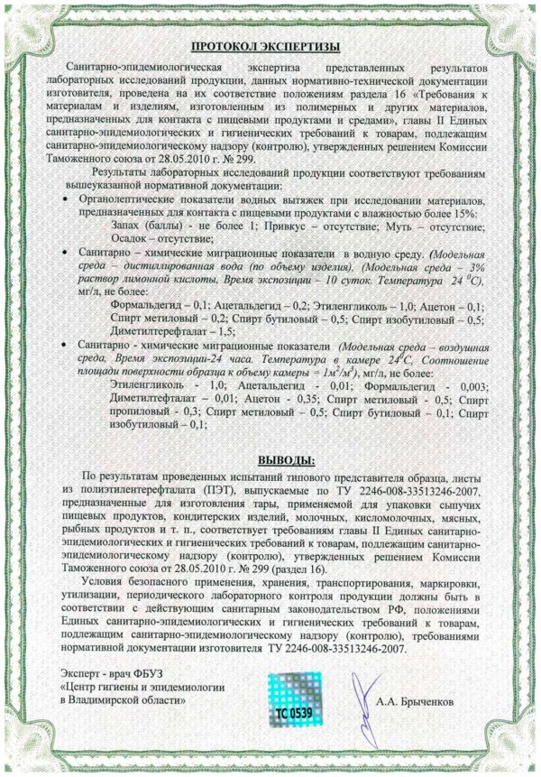 Объемное электрическое сопротивление ПЭТ листов – 1*1014 Ом*см