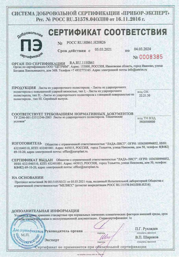 Компания «ЛАДА-ЛИСТ» производит листовой ударопрочный полистирол на собственном предприятии в Тольятти.